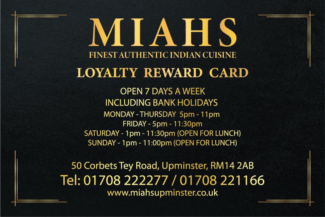 Order your food online from your number 1 authentic Indian takeaway in town. When it comes to Upminster and the local surrounding areas, MIAHS is the obvious choice for 1000’s of families. Try once, love it forever.
